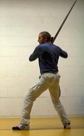 "Do schick dich also mit: stand mit linckem fuoß vor, vnd halt din schwert an diner rechten achseln."