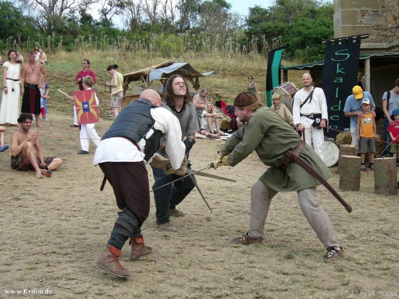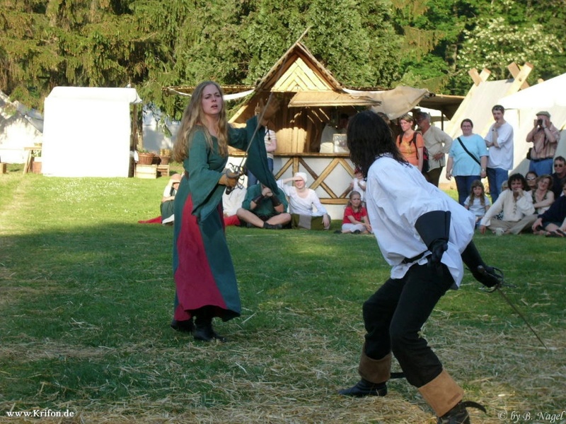 Wir entnehmen für den Inhalt der Schaukämpfe das Erlernte aus unserem Training und ergänzen dies mit Elemten aus dem szenischen Fechten.